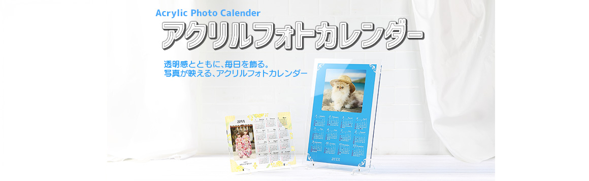 Create an original calendarWhy not turn your favorite photos saved on your smartphone or computer into a luxurious and transparent acrylic photo? With high-quality UV printing unique to photo labs, you can easily create your own original acrylic photo.